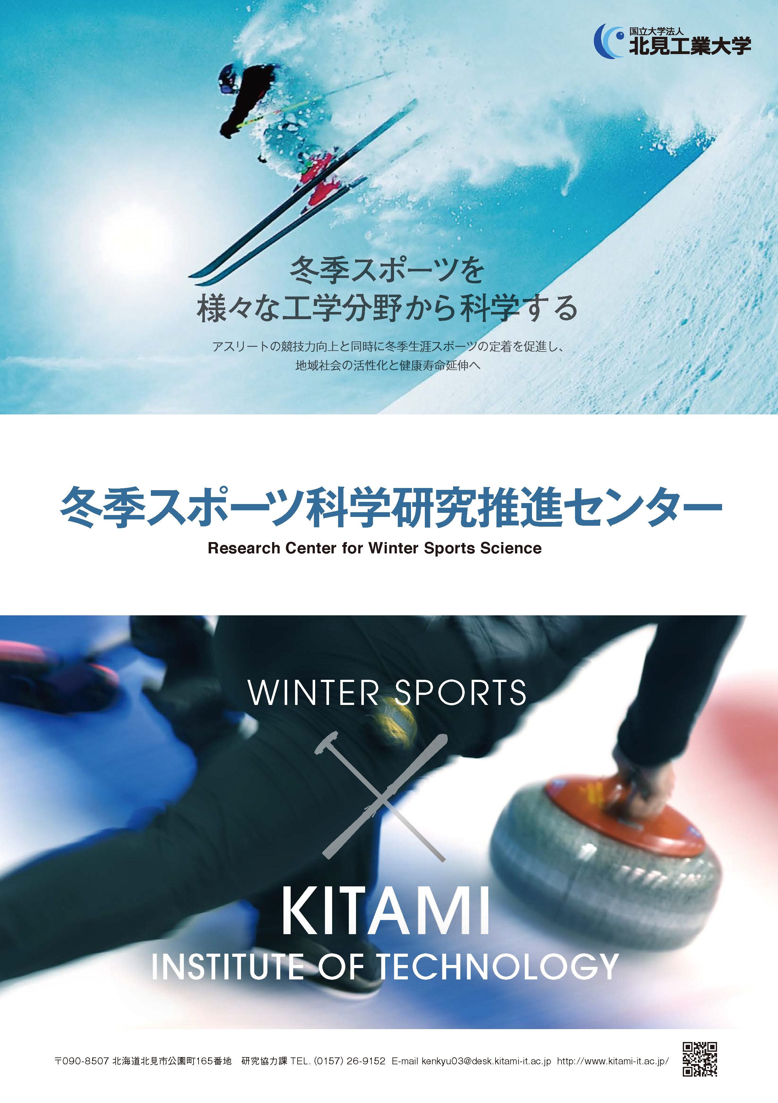 冬季スポーツ科学研究推進センターは、地域と密着し工学的視点から冬季スポーツの研究に取り組む世界的に前例のない研究組織です。積雪寒冷地域に立地する北見工業大学の特色ある研究テーマとして冬季スポーツに集中的に取り組み、アスリートの競技力向上を目指します。