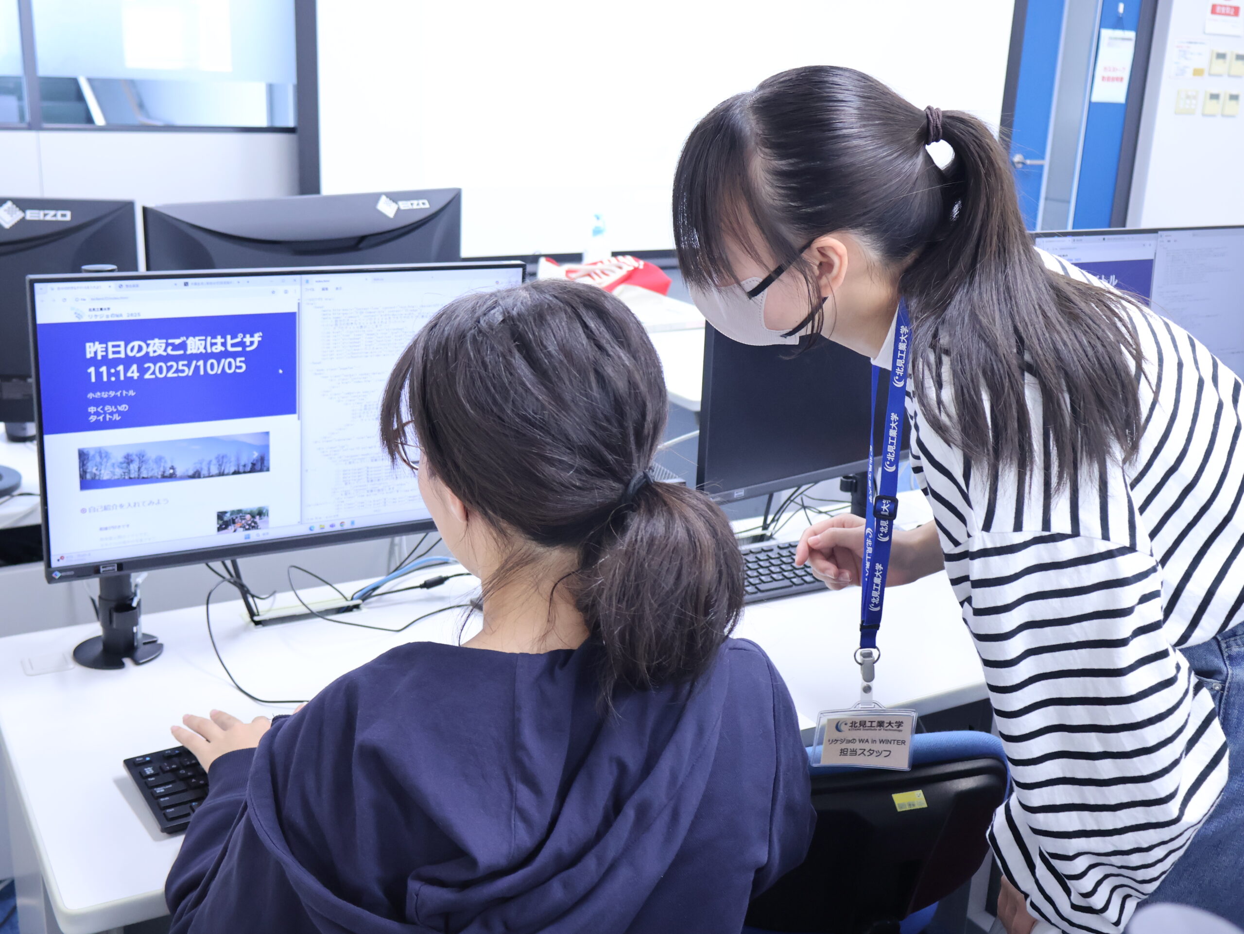 | 小中学生のみなさんが滅多に入ることのない大学に来てくれたので、緊張したり堅苦しくならないように、とにかく優しくて親しみやすいお姉さんでいることを意識しました。 |