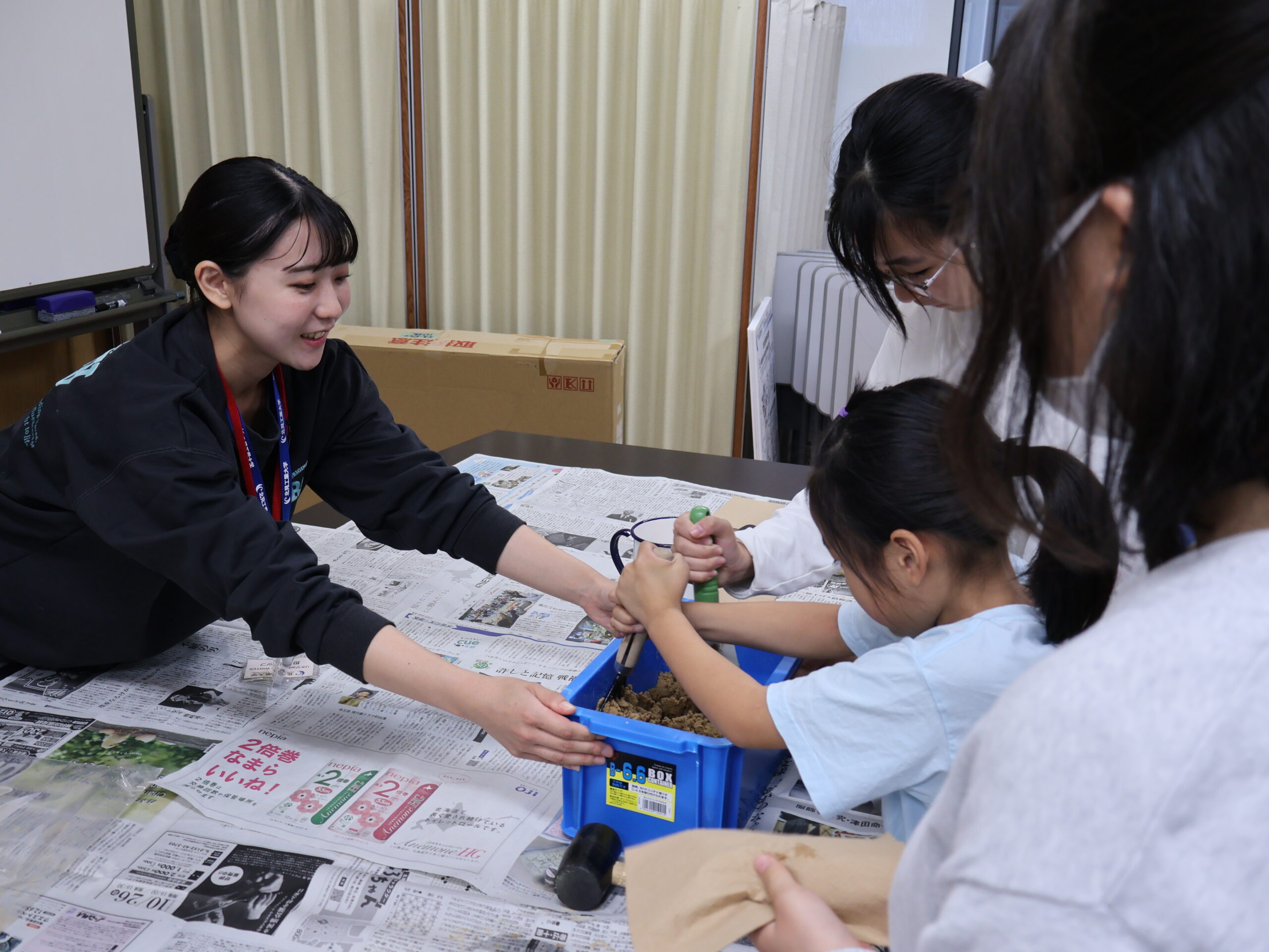 「土いじりってやっぱり楽しいよね、大学の研究でもこんなに楽しく実験できるんだ!」と思ってもらえるように、自分も楽しみながら参加者のみなさんと一緒に実験することを心がけました。 | |