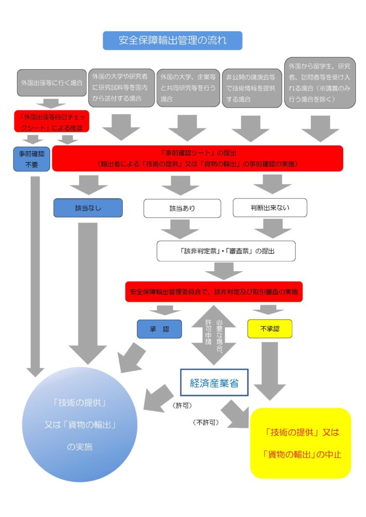 外為法による規制を遵守するため、本学では以下の場合、「事前確認シート」の作成・提出が必要です。各手順に従い、手続きを行ってください。