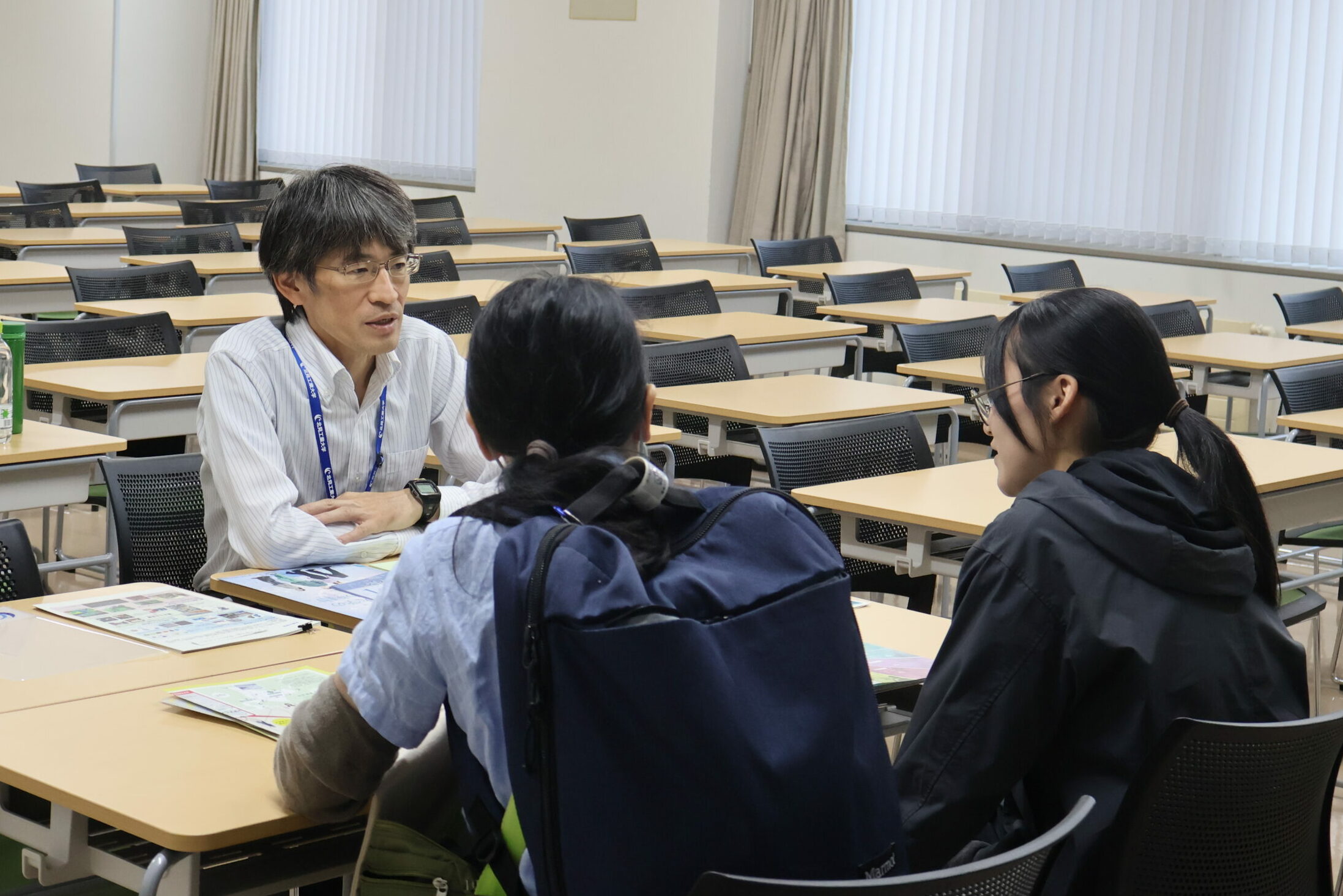 15時からはコミュニケーションアトリウム周辺の講義室において、担当教員や入試・学生生活等の担当職員が参加者からの疑問に答える個別相談を実施しました。