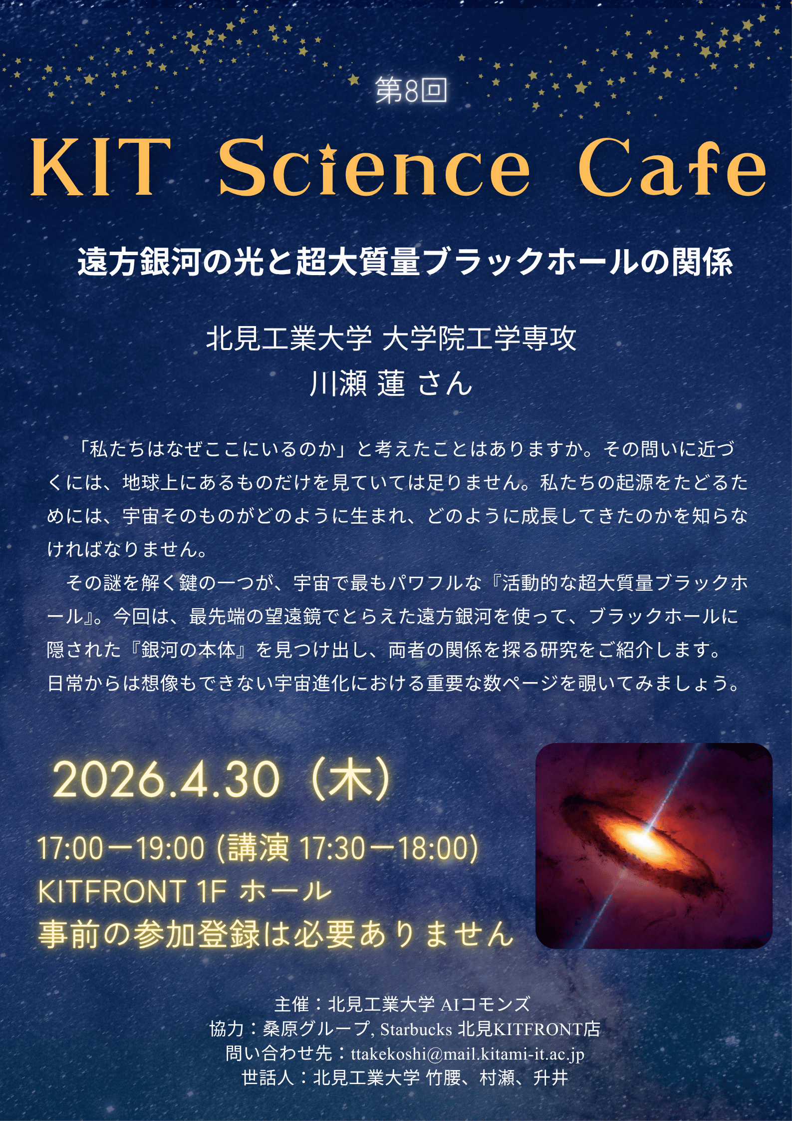 北見工業大学 AIコモンズ主催による、第8回「KIT Science Cafe」を下記のとおり開催します。