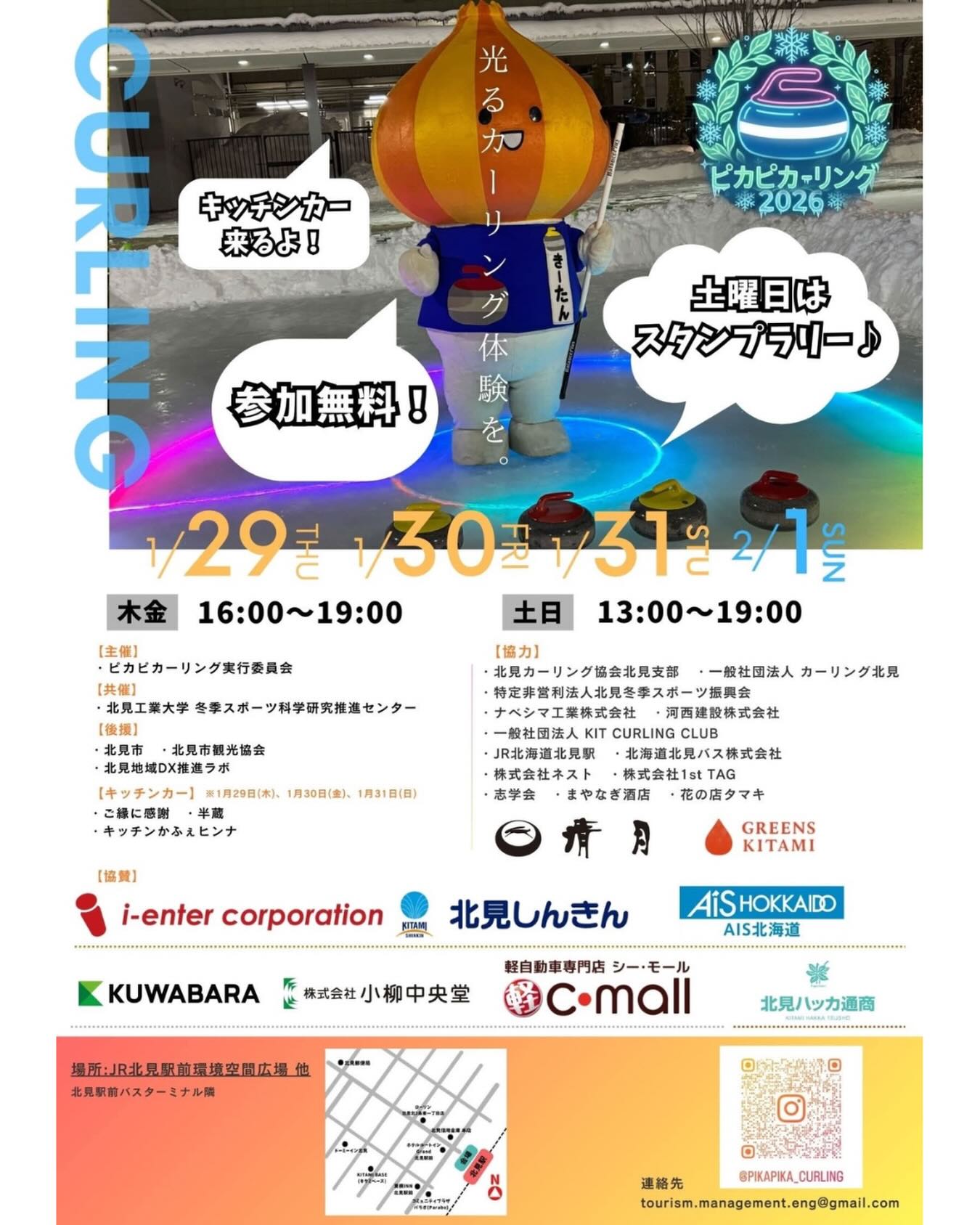 - ●(1/30)北海道新聞:きらめくリンクでカーリング体験 北見駅前で2月1日まで催し
