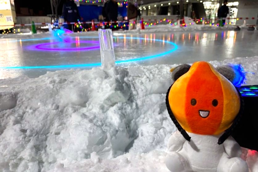 昨年に引き続き開催した本イベントは、今回から本学学生のほかに関係機関等にもご協力いただいて実行委員会を組織し、開催に向けて準備を進めました。約3週間前から雪を使って全長10m、幅5mの土台部分を設置し、数回に分けて水を入れ凍らせ、LEDライトを埋め込んで厚さ3~4cmのリンクを作りました。