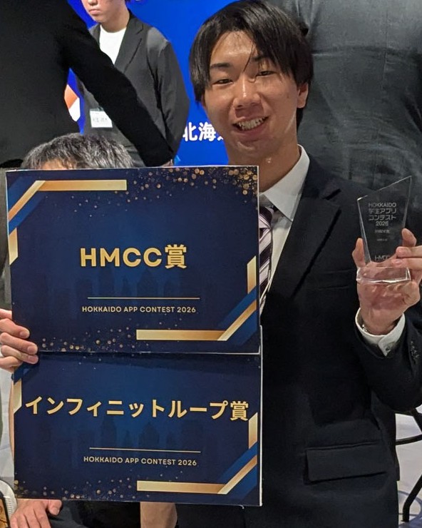本学大学院生が「HOKKAIDO学生アプリコンテスト2026」においてHMCC賞とインフィニットループ賞をW受賞